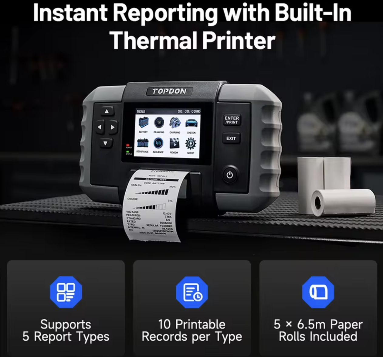 BT600 Plus es un comprobador de baterías de nivel profesional, diseñado para cumplir con las exigencias de talleres, concesionarios y técnicos móviles. Equipado con una pantalla clara de 3,5” y una batería integrada que ofrece más de 14 horas de funcionamiento autónomo, permite realizar diagnósticos precisos en sistemas de 6V, 12V y 24V. Desde pruebas estándar de batería hasta medición de resistencia en lote y impresión bajo demanda, el BT600 Plus ofrece un rendimiento rápido, versátil y confiable, en cualquier entorno de trabajo.